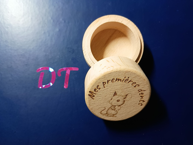 Boite ronde en bois pour les premières dents de votre enfants.